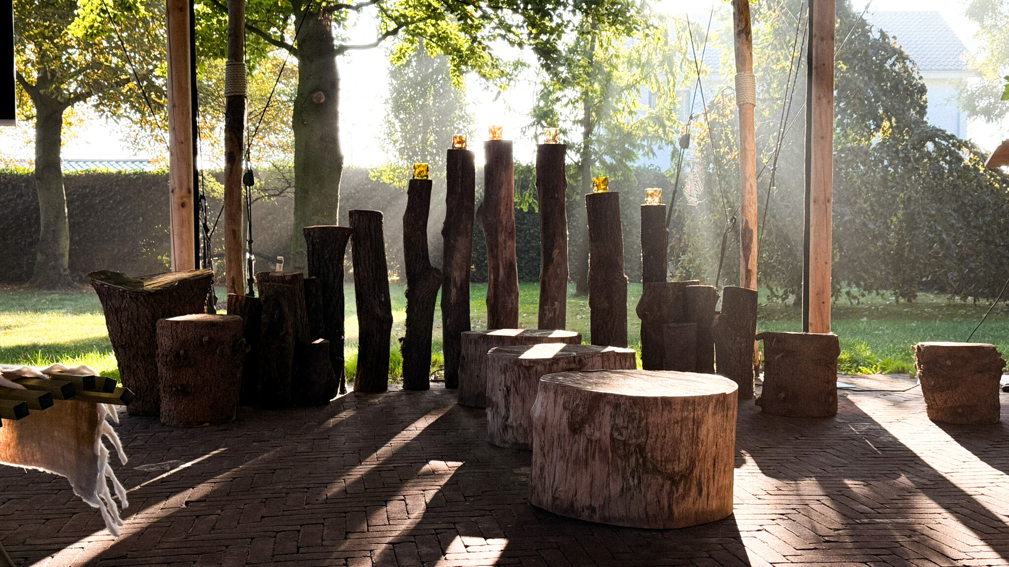 Wil je in geval van slecht weer kunnen genieten van de knusse sfeer van de Buitenaula, dan plaatsen we zijwanden en zijn er kachels.